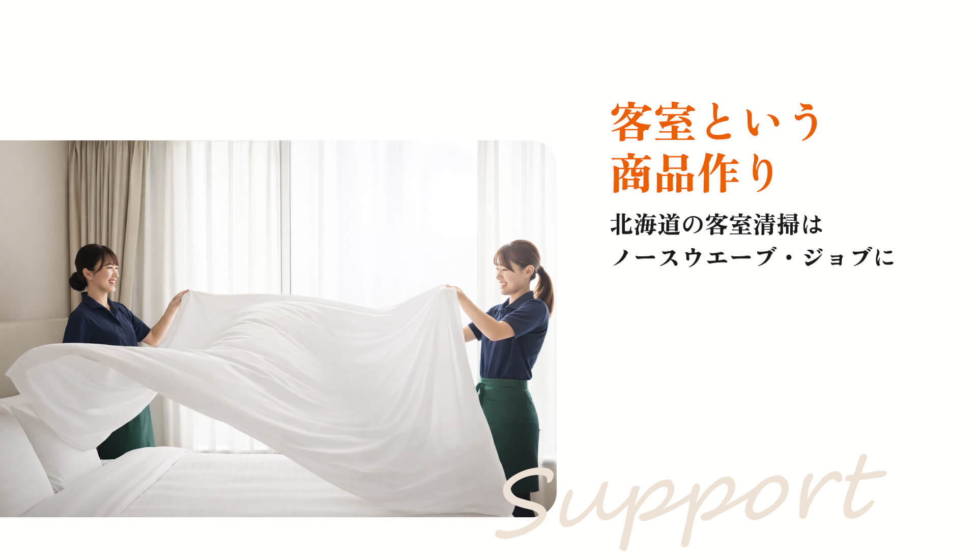 ノースウエーブ・ジョブは、ホテルに宿泊される全てのお客様に『このホテルに決めてよかった』『日本に来てよかった』と思っていただける客室づくりを日々⾏っております。